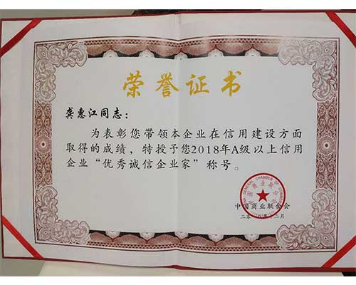 熱烈祝賀董事長龔惠江先生榮獲“優(yōu)秀誠信企業(yè)家”稱號(hào)