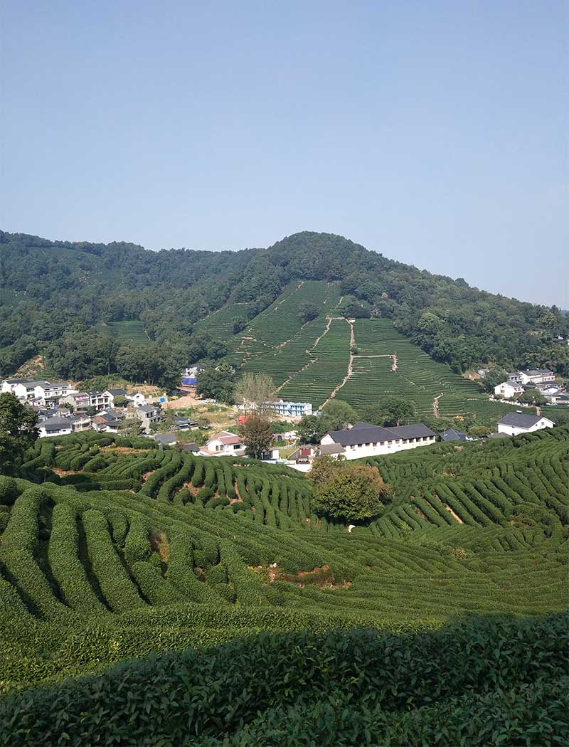 大家從龍井村的十里瑯珰古道入口牌坊拾級而上,到了半山腰往上看,山脊上三三兩兩的登山愛好者,從山腰往下看,漫山遍野的茶園,一片壯觀的景色。
