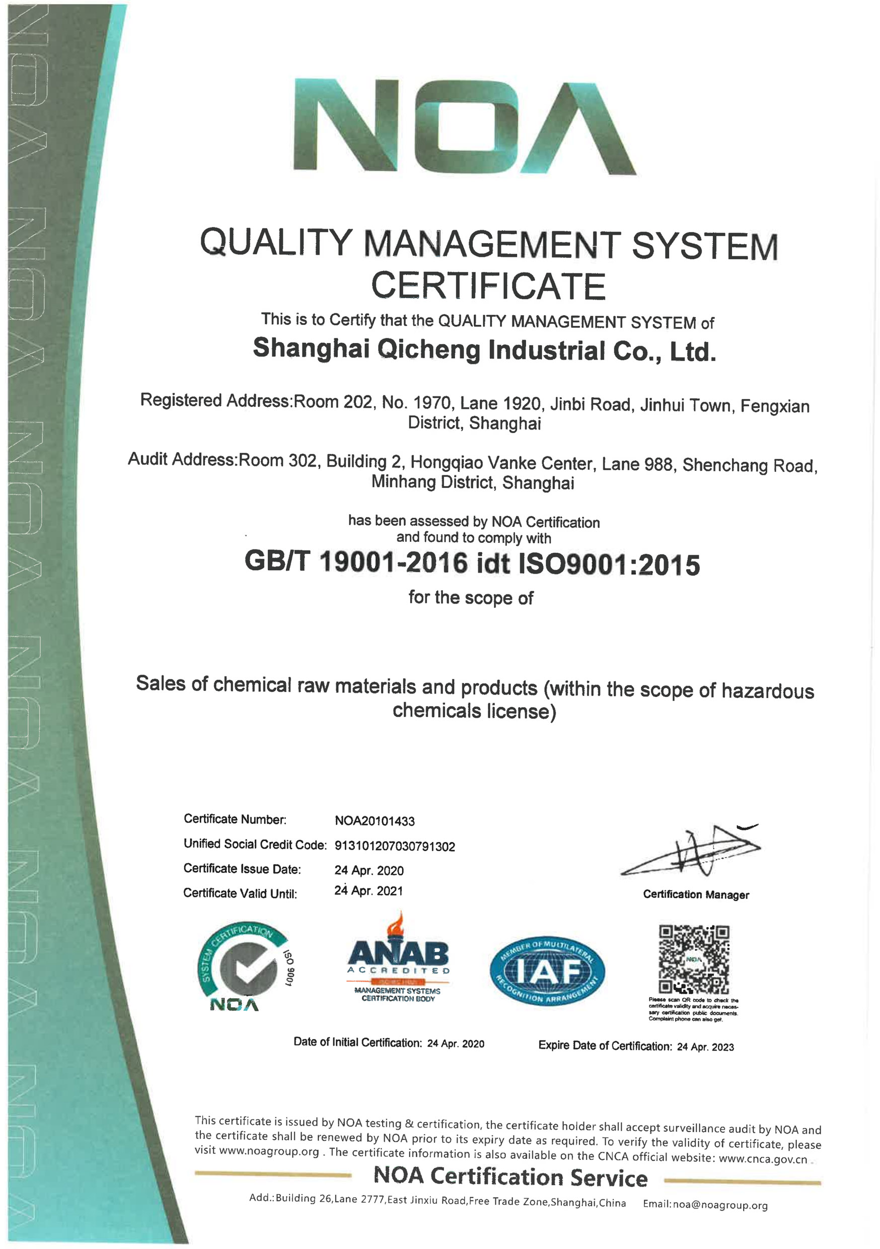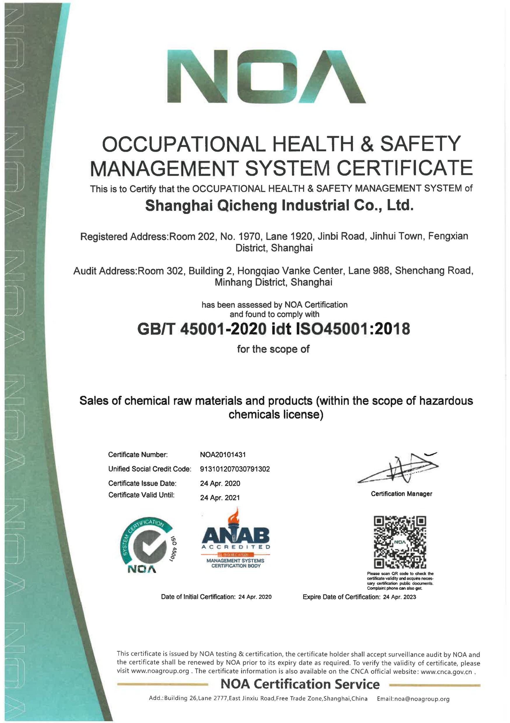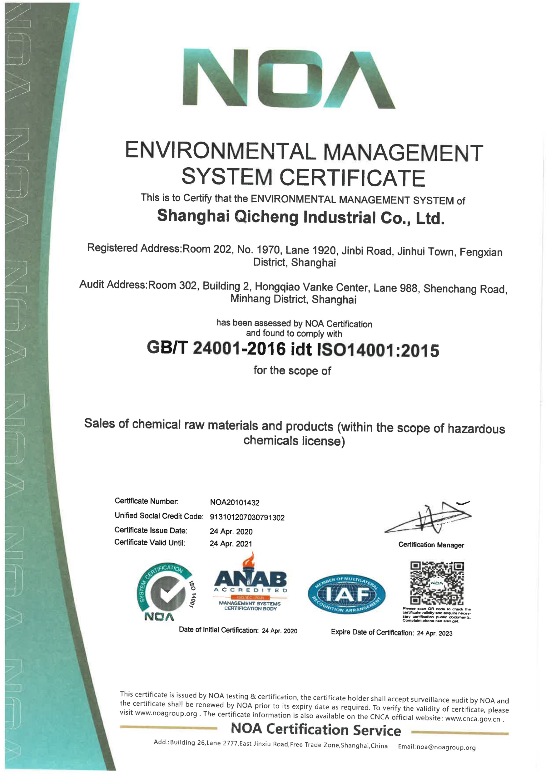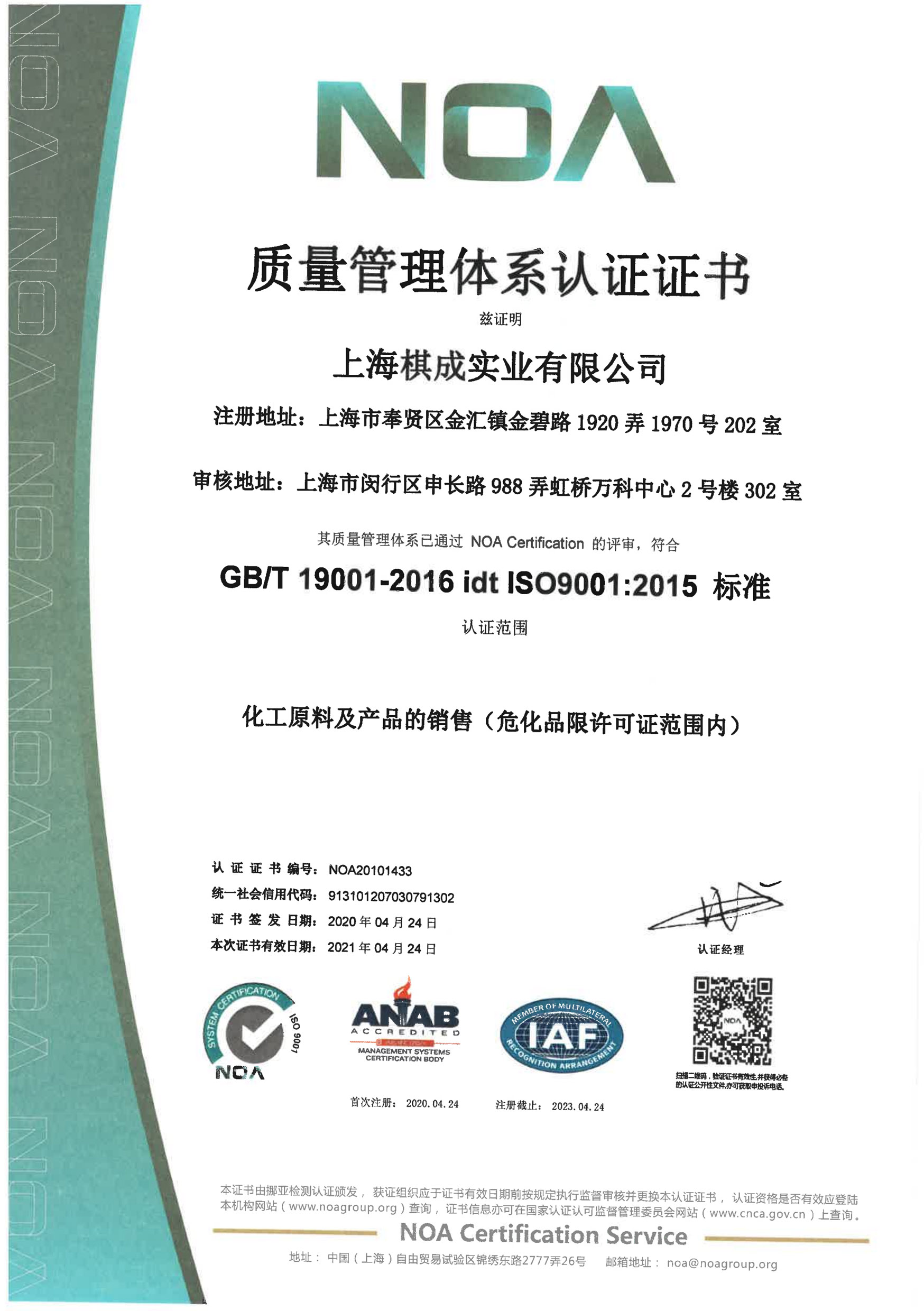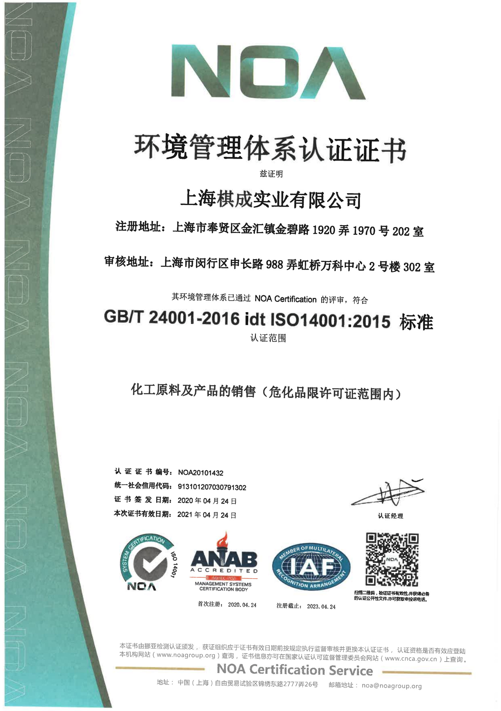 為進一步規(guī)范公司業(yè)務流程、有效控制風險,形成標準化經營、規(guī)范化管理的模式,上海棋成實業(yè)有限公司從戰(zhàn)略的眼光出發(fā),導入ISO9001質量管理體系、ISO14001環(huán)境管理體系和ISO45001職業(yè)健康安全管理體系,并順利通過第三方認證機構的評審認證。