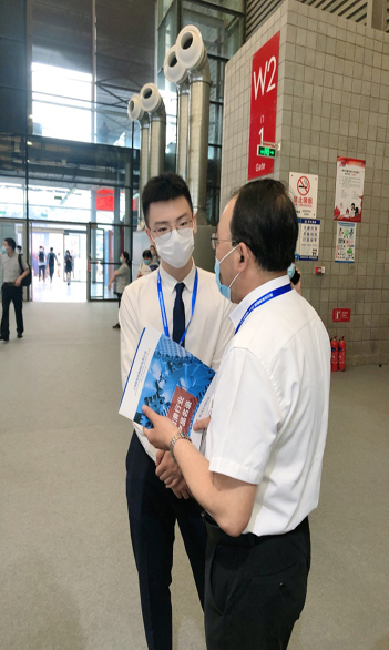 供應(yīng)商盟慶信邀請業(yè)務(wù)主管沈永彪一起在展臺給賓客介紹(下圖)。