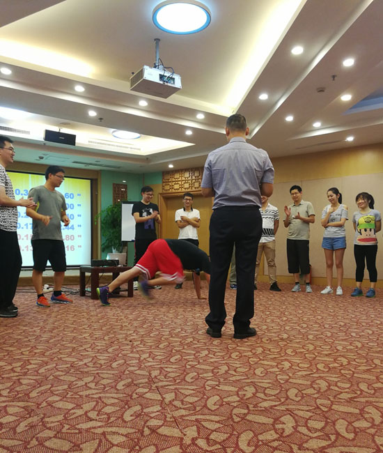我們剛開始的成績是68.22秒,離設(shè)定的19.80秒還有很大的差距,通過不段的隊形變化,同事之間的漸入佳境的配合,我們的成績一輪比一輪進(jìn)步,58.50,49.81,43.87,38.16,29.00,24.50,22.00,20.53 ……看到成績不斷的提升,我們的信心也越來越足,雖然中間也偶有失敗,但是離我們設(shè)定的19.80秒的目標(biāo)很近了,最后一鼓作氣,取得19.56秒的成績,做到了70%的企業(yè)做不到的事情,團(tuán)隊的力量是驚人的,團(tuán)隊協(xié)作可以發(fā)揮個人難以企及的終極目標(biāo)。我們中間的過程很曲折,每失敗一次,我們的信心就被打擊一次,覺得19.80秒的速度太快,完成不了,隊里就有不一樣的聲音,想要改一下目標(biāo)。但是我們每失敗一次,張老師就嚴(yán)厲批評我們一次,嚴(yán)厲告知我們目標(biāo)既然定了,就堅決不改變,而且隊里有不一樣的聲音,絕對服從領(lǐng)導(dǎo)的安排,不管領(lǐng)導(dǎo)正確與否,因為領(lǐng)導(dǎo)的見多識廣,領(lǐng)導(dǎo)承擔(dān)的責(zé)任更大,所以只能聽領(lǐng)導(dǎo)的聲音。
