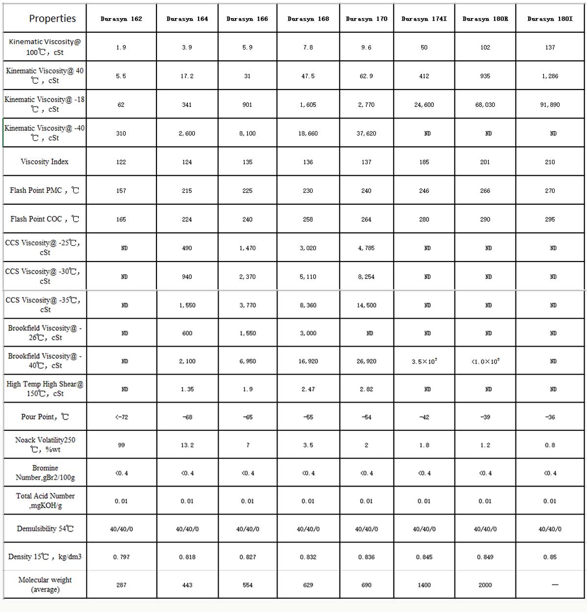 ▲ INEOS procreative Durasyn® 160、170、180series of products is a synthetic base oil of pure C10 olefin,Colorless and odorless transparent liquid,Excellent high and low temperature performance,Excellent thermal oxidation stability,It is FDA certified