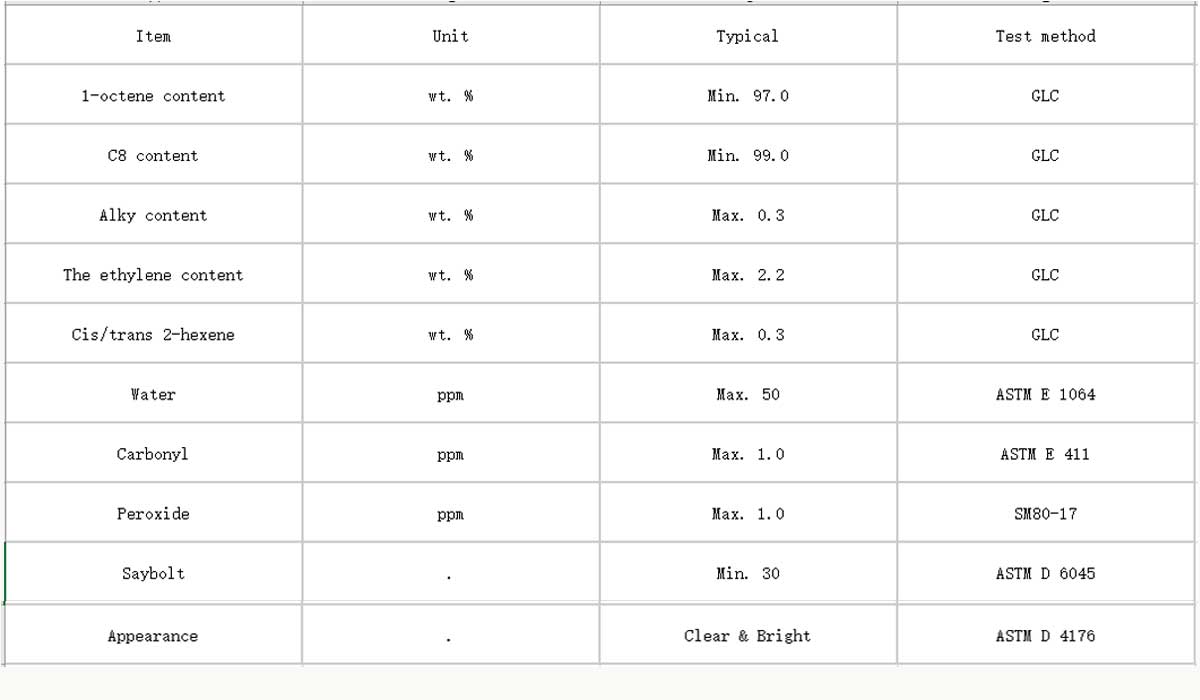 3, This product is used to produce C8 alcohol, further produce various kinds of ester plasticizer.