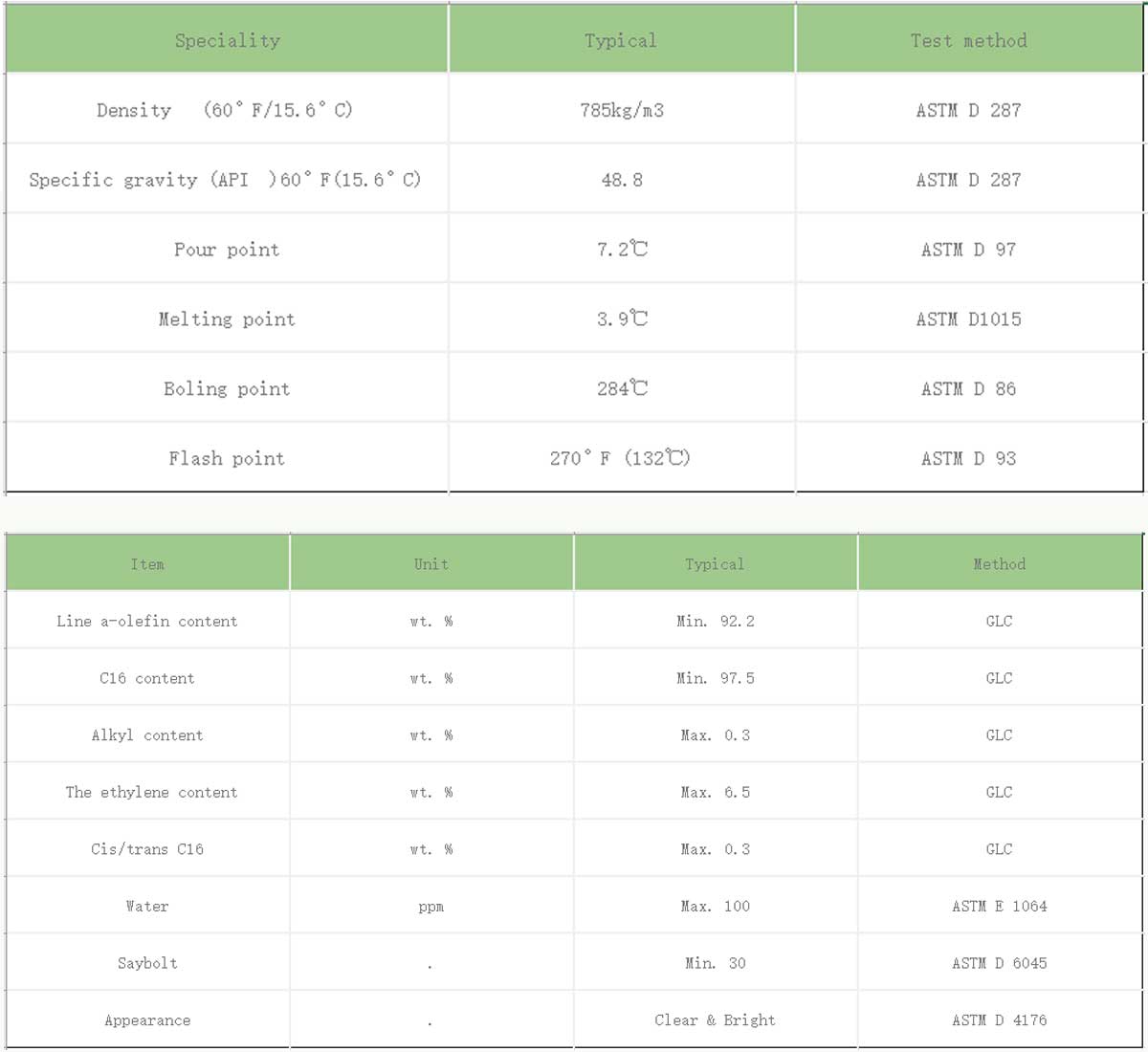 2, This product is used to produce C18 alcohol ,LAB , a-olefin sulfonate ,ADAM etc…