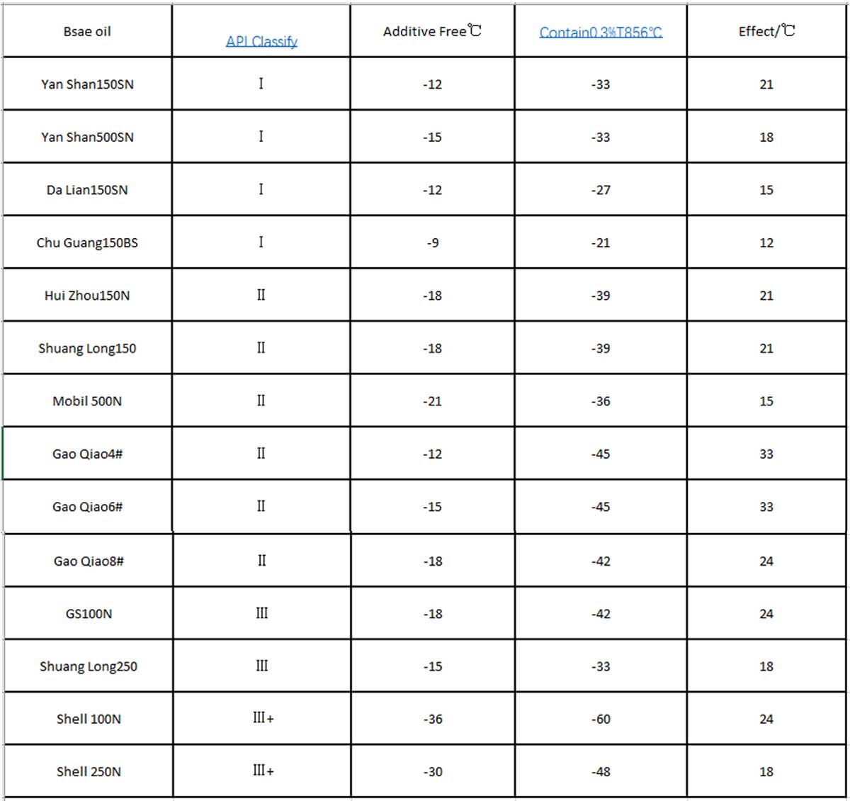 ▲ T-856 is a high concentration of polymethacrylate (PMA) coagulant in deep refined oil.Excellent health effects can be found in all kinds of viscosity, especially in medium and high viscosity base oils.And it has very good shear stability.Especially suitable for engine oil, gear oil and hydraulic oil and other lubricating oil products.Easy to dissolve in various mineral oil, PAO, ester oil, and with lubricant additives has good compatibility.